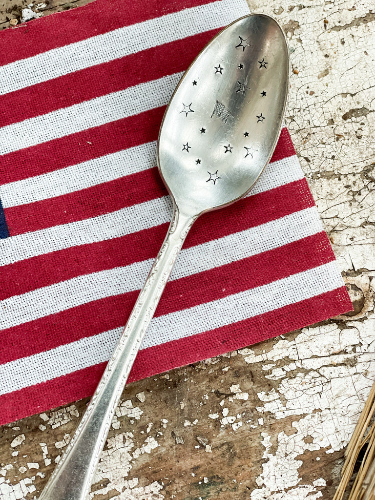 Hand stamped flag spoon with stars. This is for ONE spoon.