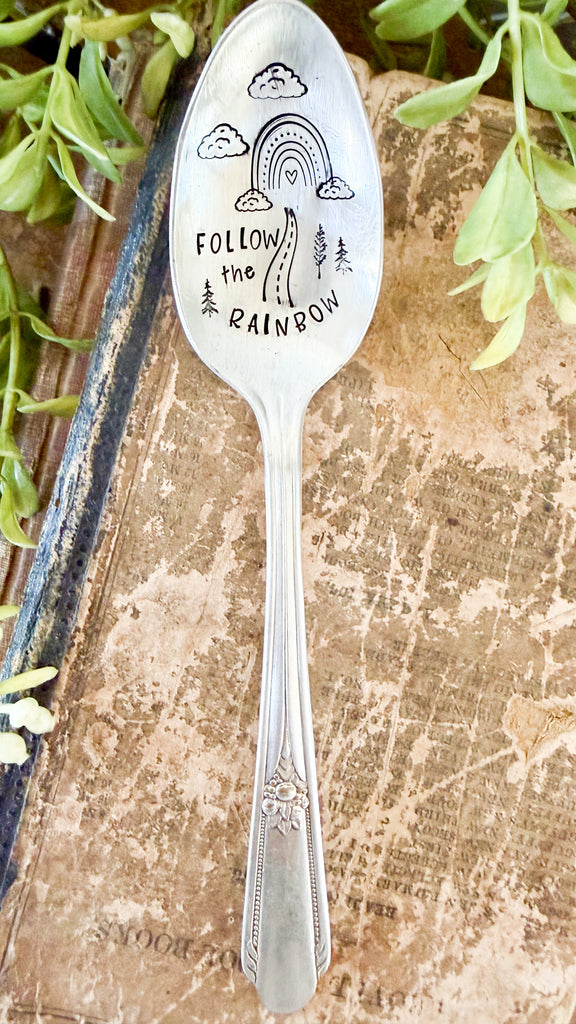 Follow the Rainbow stamped spoon with rainbow and clouds! Perfect for St. Patrick's Day!