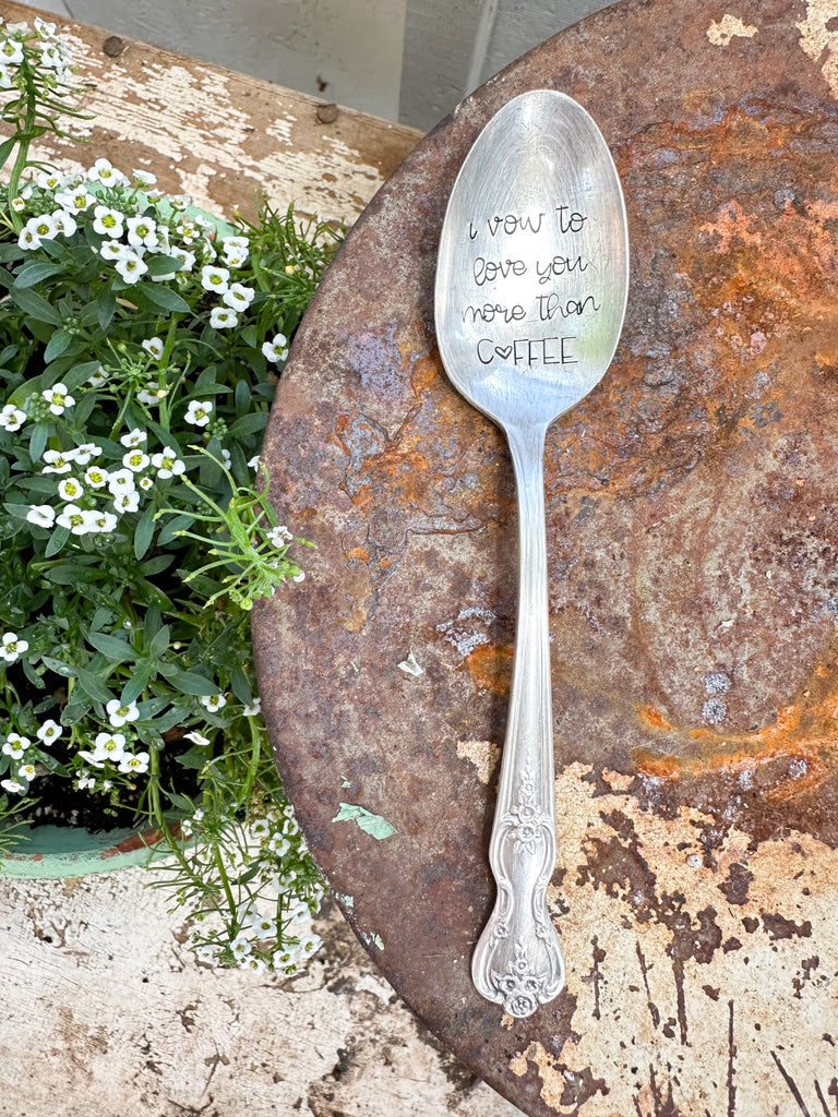 Hand stamped “I vow to love you more than coffee”. This is for ONE spoon.