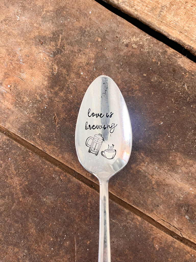 Hand stamped “love is brewing”. This is for ONE spoon!